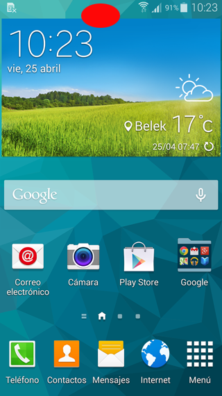 Desliza dos dedos por la pantalla como si se abriera la Barra de notificaciones